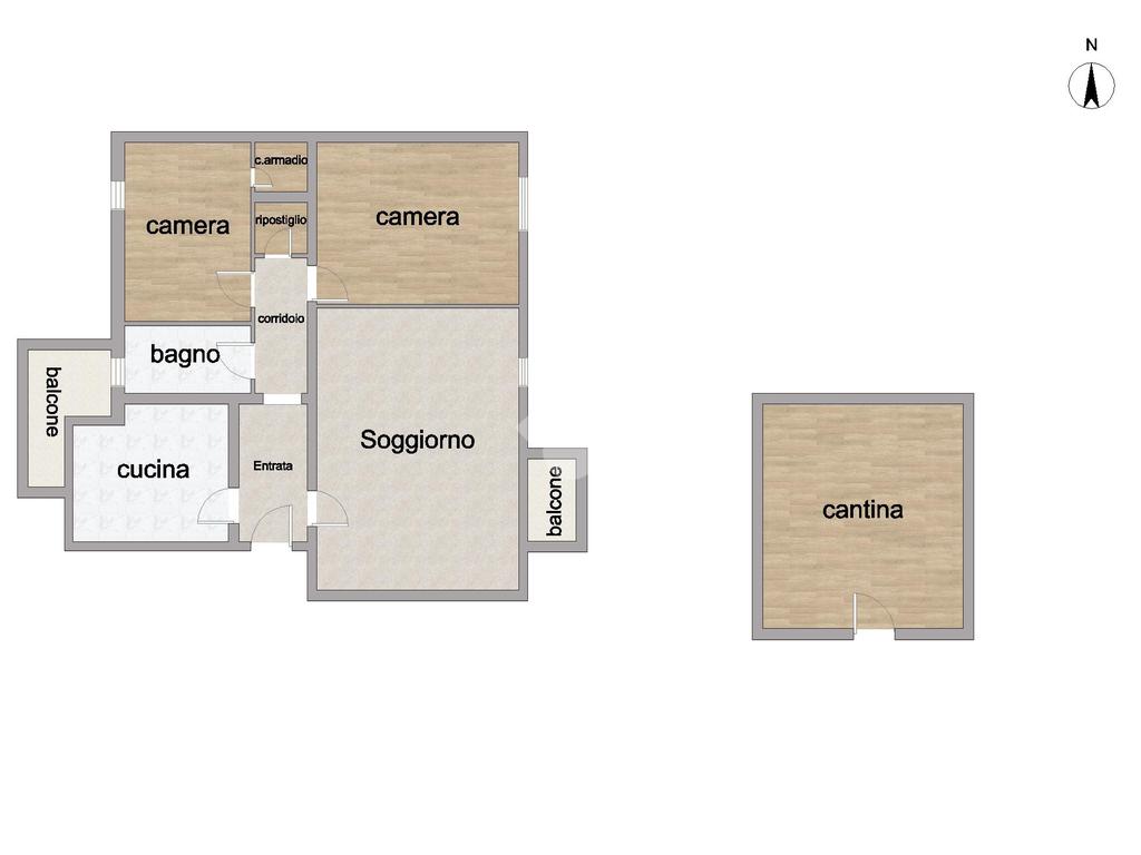 L’ingresso introduce a una distribuzione degli spazi ben organizzata: sulla sinistra si apre la cucina, luminosa e funzionale, con accesso diretto al balcone; sulla destra troviamo un ampio soggiorno impreziosito da un doppio punto luce, grazie alla presenza di balcone e finestra, che rende l’ambiente particolarmente arioso e conviviale.